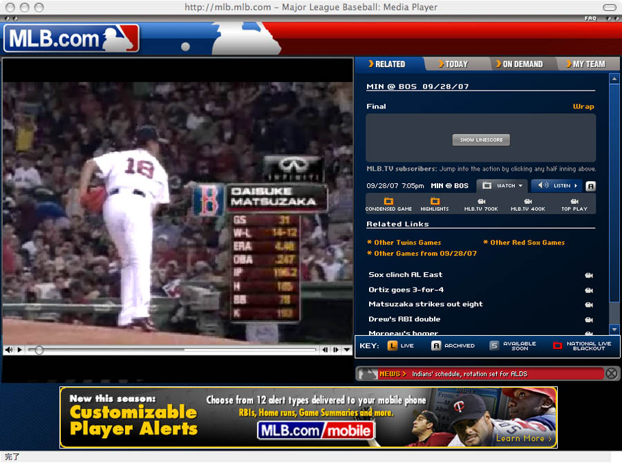 生中継、またはシーズン中全ての試合がアーカイブに入っているので、私は時間のあるときにこの横のマックブックでゲームをかけっぱなしにして、松坂さんの全てのアウト、そして三振を見てきました。