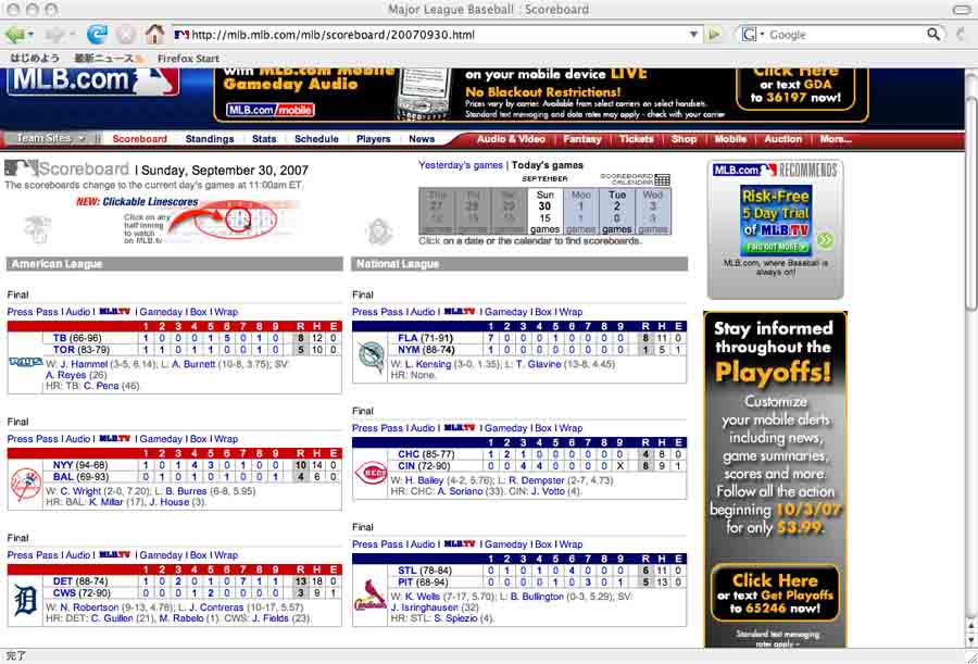 ブロードバンドの進歩で、MLB.COMというインターネット上でゲームが観られるようになりました。