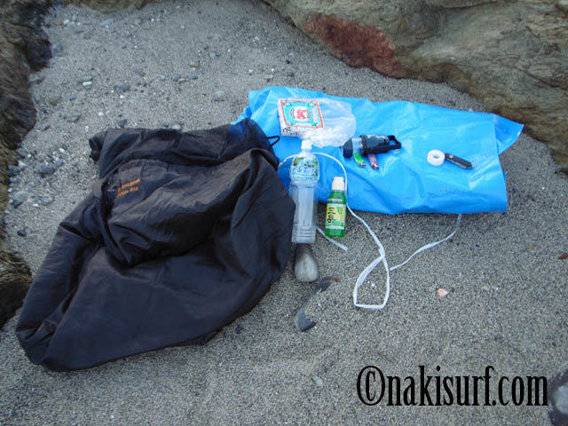 という質問があったので、偶然神乃島で撮ってあった夏の野宿必需品一覧表をアップします。