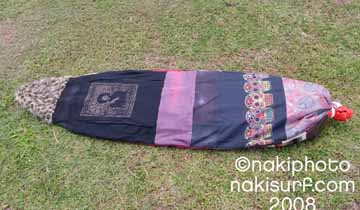 サイズもこのようにジャストサイズで、カスタムオーダーのボードケースっていいなあ、とうっとりとしながらこの写真を撮りました。