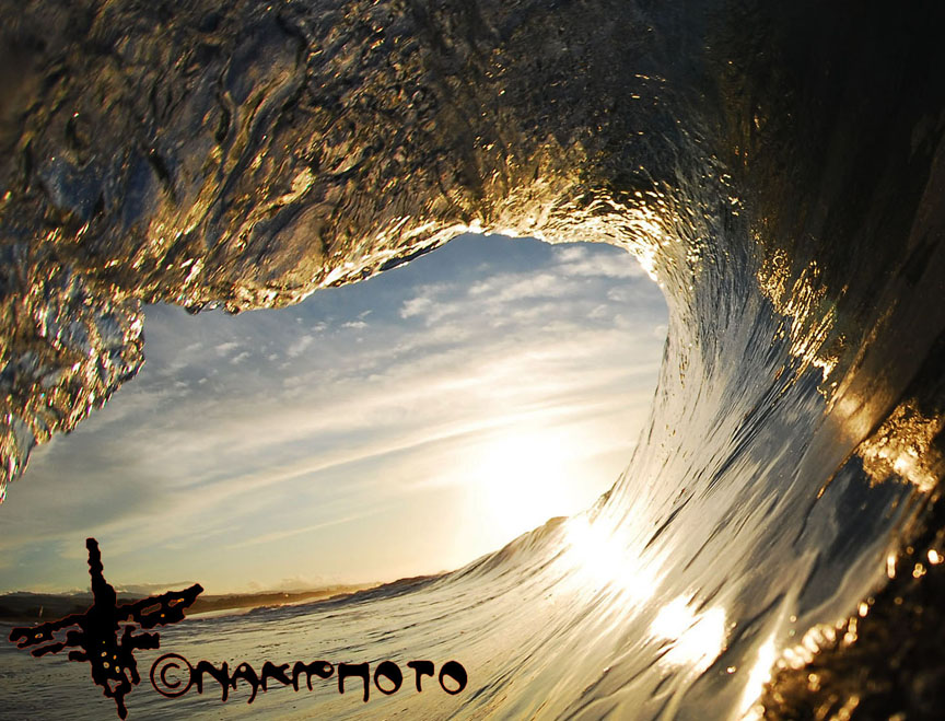 左側に太陽、右側に波壁が写っている。よく見るとここには中国に古くから伝わる『陰と陽』という陰陽学説の通り「太陽に向かう(陽)、太陽に背く(陰、写真右側波の腹部分)」という対術(タウン&カントリーのロゴ)が鮮明に映っていた。