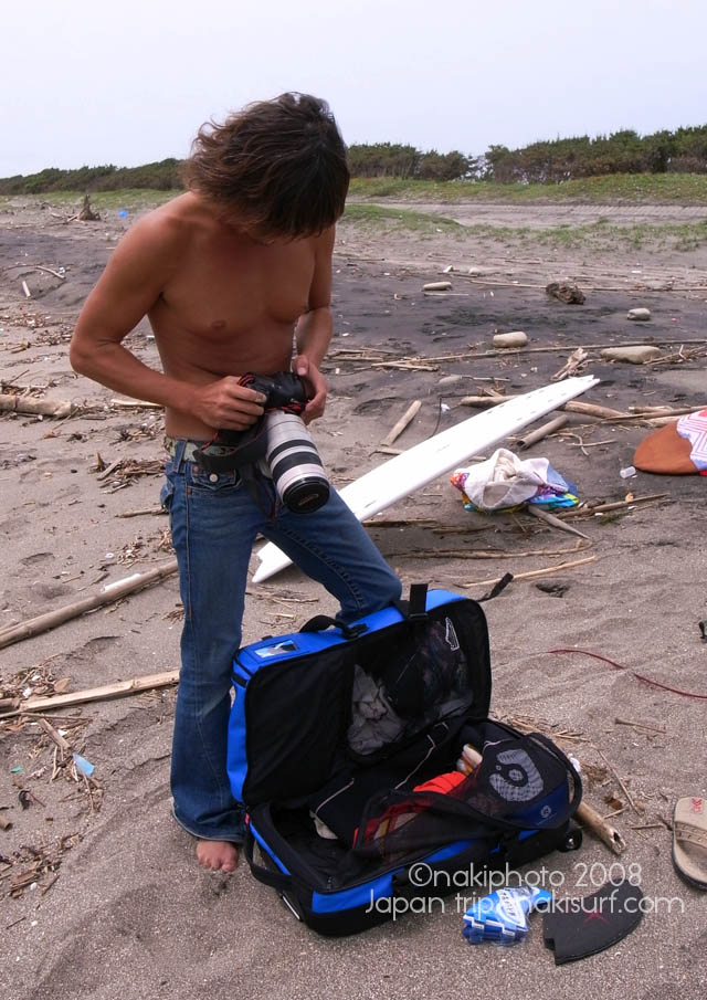 ↓人の少ない「クアトロ」というブレイクにビーチギア全てを持って行き、カメラセッティングをする。