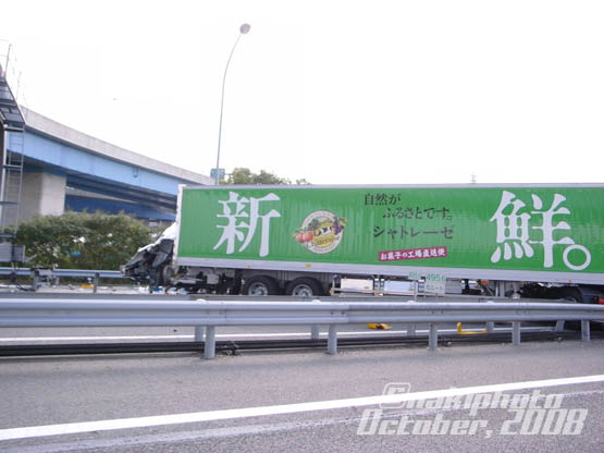 この「新鮮。トラック」がスピンし、左ルートの全ての車線を塞いだ。