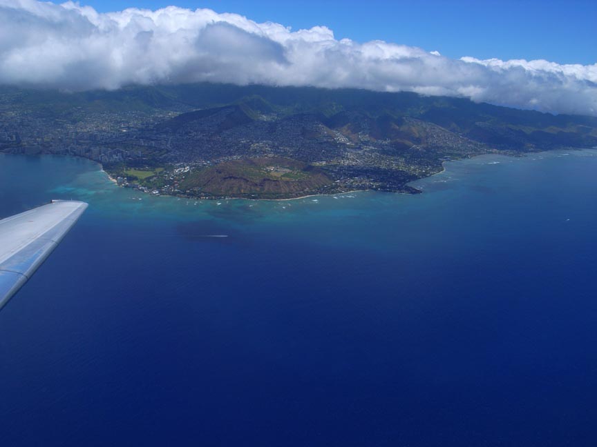 今さっき中継地点のホノルルに到着。