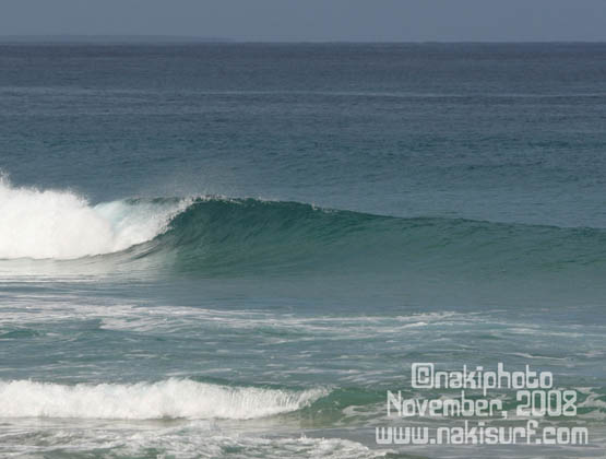 「その浅い岩の手前に砂州があったから沖でブレイクしていたんだ。でも先週の大波で砂州が取れちゃったからこれが本来のソフトサンドリーフになったのだ。本来のピークはかなり危険なんだぞ」