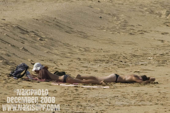 平和なのは日焼けガールズで、右の子はおしりをより焼こうとして反対の向きになったり、うなじを露出したり「焼き」に懸命なのがわかる。