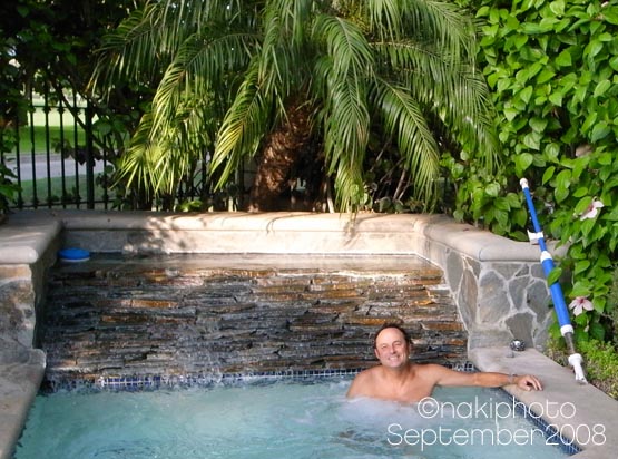 「オー、来ていたのか?ごめんごめん、庭のジャグジーにいるからオイデ」