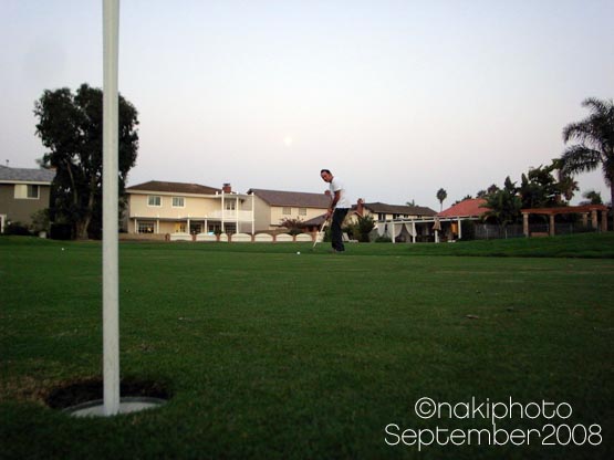 さて、ドッキーの裏庭でゴルフができるというのでやってきました。