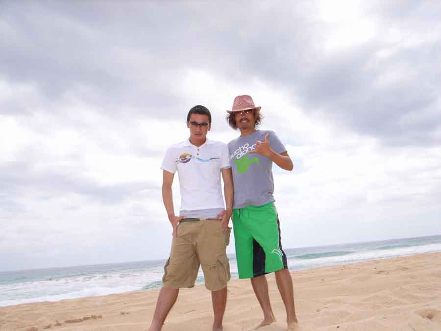 波乗り後、ぜひ教教祖トムくんとぜひ教広報部長の俺で2ショット。