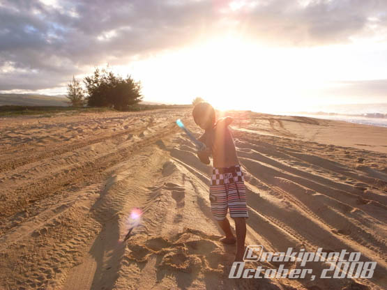 俺が沖で泳ぎ撮り、ノアはその間ずっと浜で走り回って、釣り師が捨てた糸を回収したり、砂浜にお絵かきしていました。