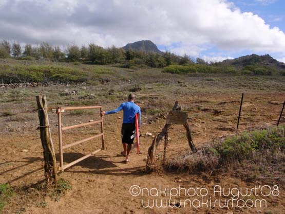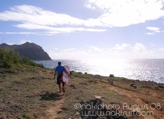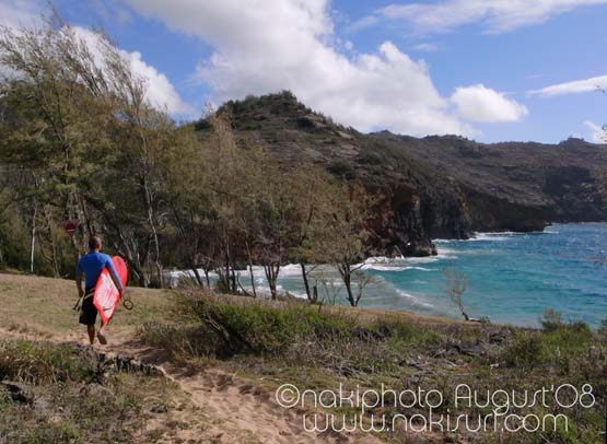 闘牛に行ったココ情報によると、膝波にSUP8台、サーファー10人が入っていて乗る波はどこにもない、ということでカイル・マリグロ(鞠黒)と相談して、南東にあるシークレットまで行こうということになった。