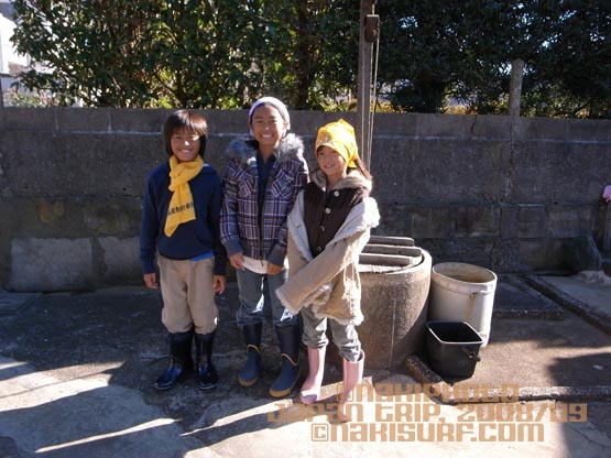 井戸の前で待ち合わせして、「しゅうかく」に出発!