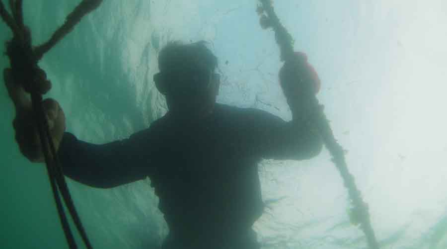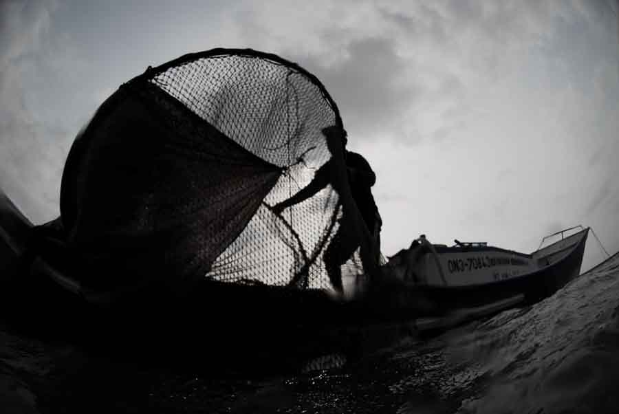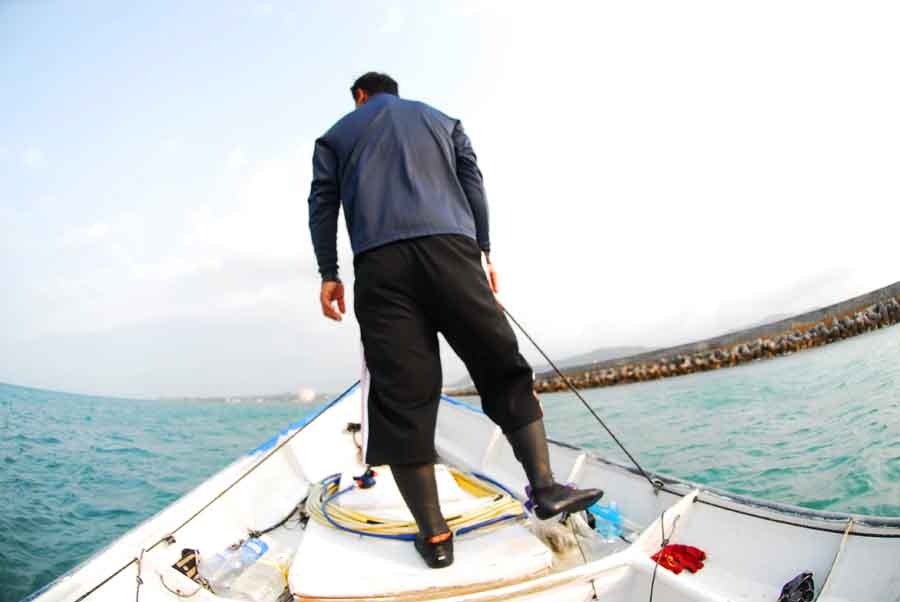 この日は撮影と取材という私たちのために網ひとつだけを揚げるのみでしたが、普段10カ所を廻り、同様な作業をされているという。