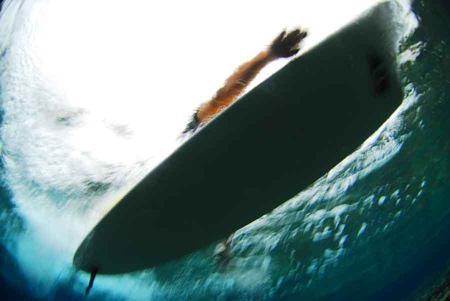俺が写真を撮っているときは、このように俺のボードを結びつけ、沖で浮いてくれてた。