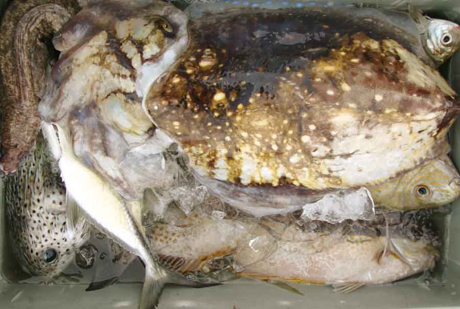 他にはトビエイ、ハリセンボン、ハコフグなども網に入っていた。