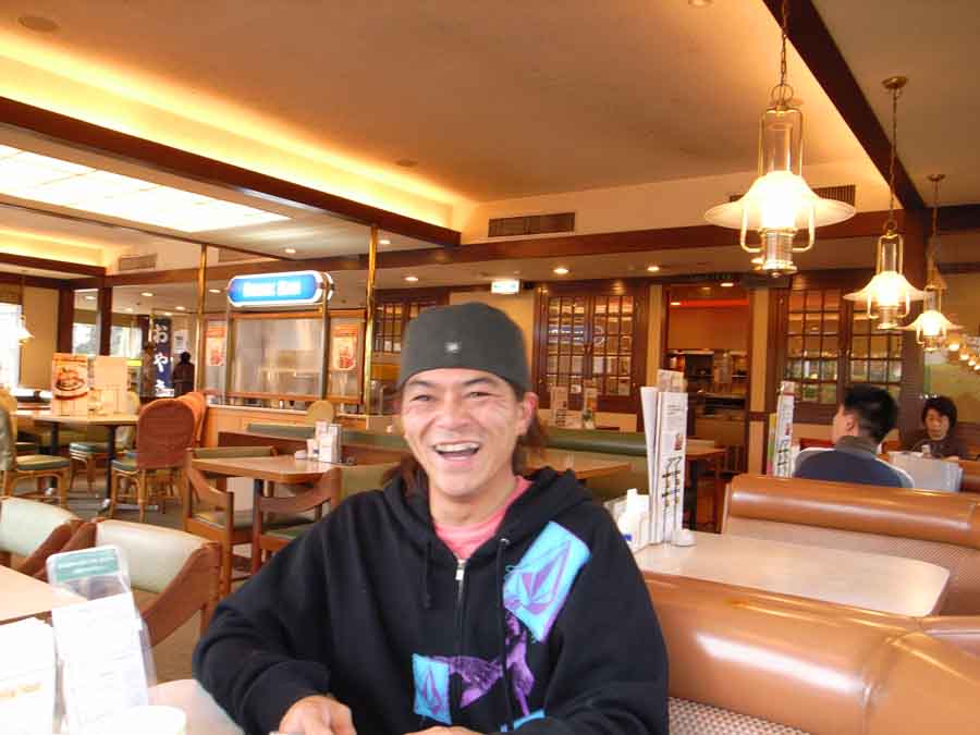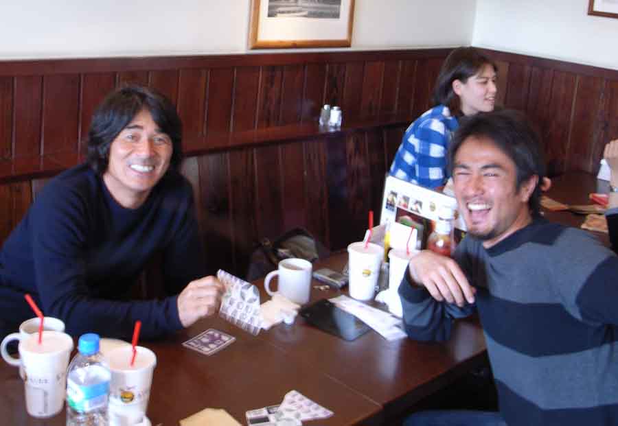 サーフィンワールドのヨゲこと、やまさんと、ロイヤルホストクラブでミーティング。