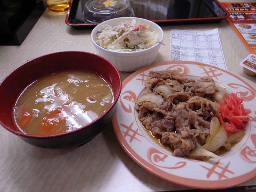 牛皿大盛り、豚汁、ゴボウサラダで650円でした。