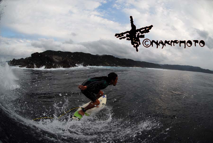 さて、ニライカナイに戻ると、バレル波はまだ残っていて、龍郷のミドリクンと一緒に波と遊んだ。