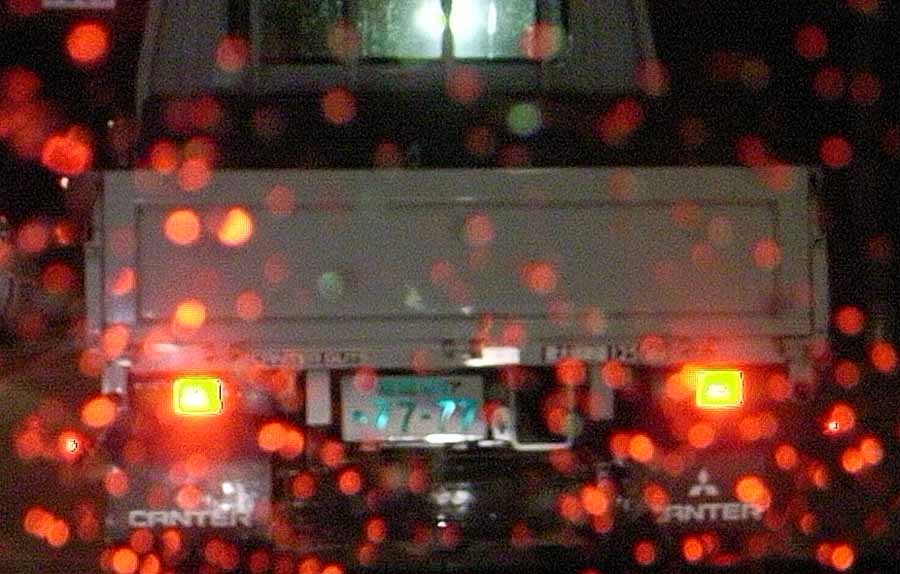 写真を撮り始めたら、前にトラックが止まり、ナンバーが7777のセブンぞろ目。