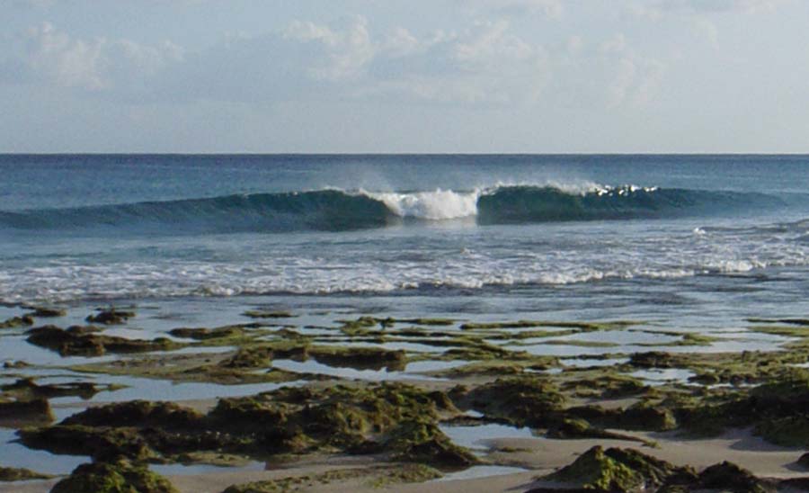 この湾の右奥にあるリーフ、通称『ボッコン』がバレルバリバリとなっていた。