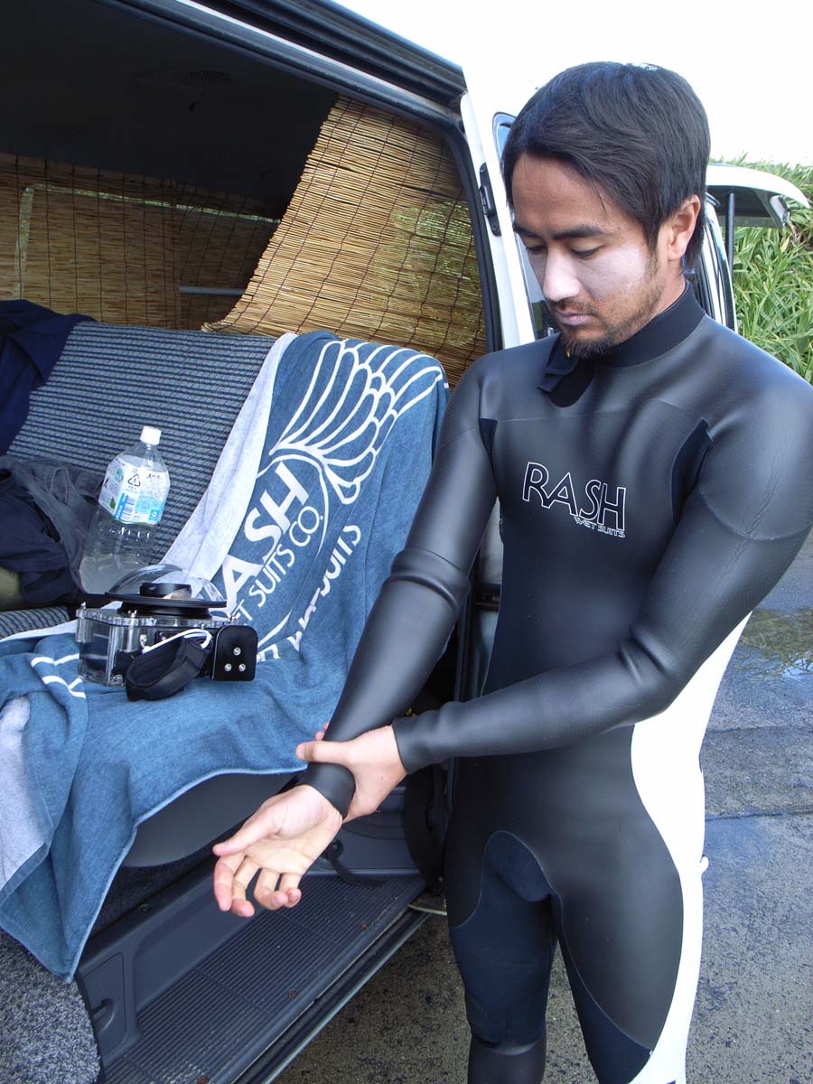 今日は竜ちゃんが水中写真を撮ってくれることとなり、ハウジングのセット完了。