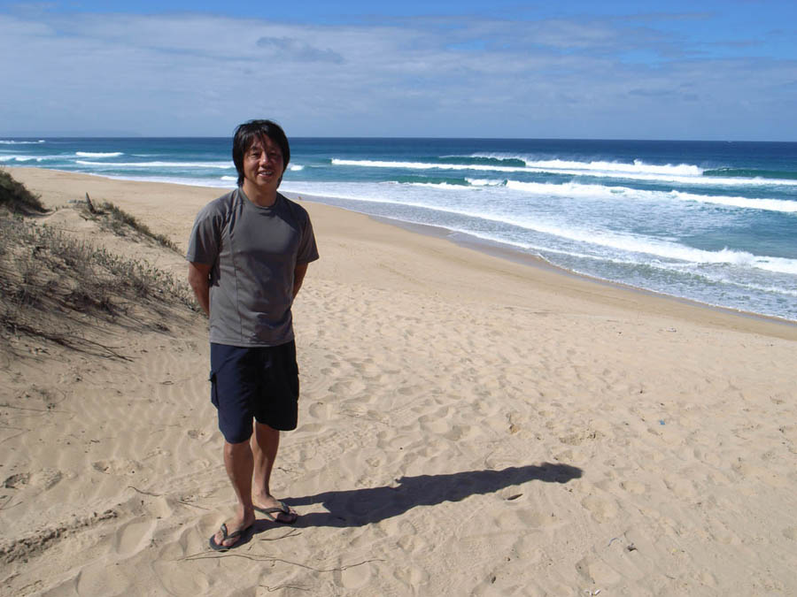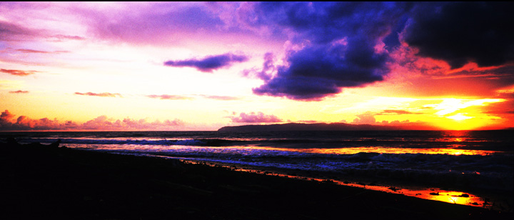 目の前に拡がった湾の左側に面した玉石の河口。世界で5本の指に数えられるという長いレフトはまだうねりが小さく、ささやかなしょぼ波だったが、夕陽の色を落とした雲がやさしく浮いていた。明日南うねりが入ってくるという予想を信じ、流木の転がる砂浜を後にし、予約してあった宿に落ち着いた。出発前にハコの薬局で、抗生物質を注射してもらった竜ちゃんはまだ弱っている。よくまあこんなでこぼこ運転に文句を言わず乗っていたものだ。早く治って一緒にサーフィンしたいよ。
