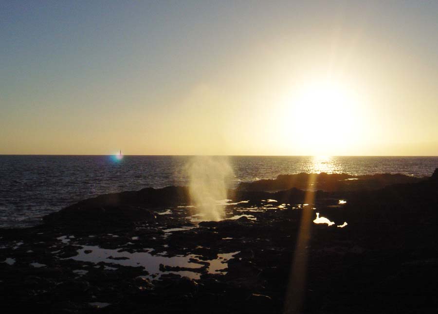 翌朝、暗いカリチェ岬に行くと無人だった。気持ちよく乗り、のんびりとクルーズしていると、10数人のサーファーたちが歓声をあげ、舟がやってきた。彼らのヨロコビを見て泣きたいような気持ちになる。ここは年々サーファーが増えているという噂だが、今年は特に多い気がする。こうなったら気持ちよく海から上がり、自然のプール、潮だまりで少し遊び、明日パヴォネスに出発することを決意し、蟹の足跡だけがある砂浜をゆったり歩いてシェイ家に戻った。