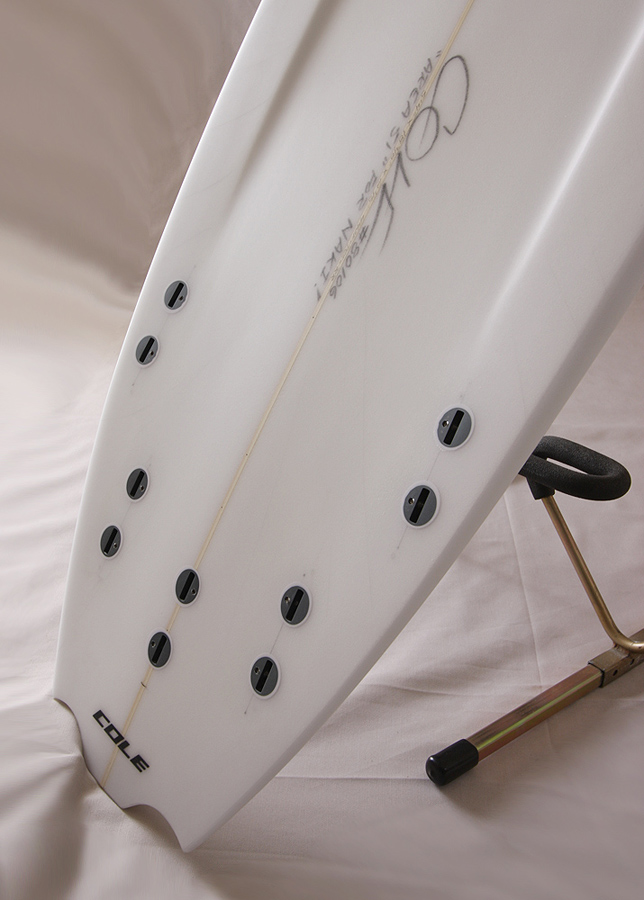 2007年の後半頃、バットフィッシュ、ブラックダイヤモンド(BD2、BD3)に代表されるラウンドノーズ属にシャープなイメージのボードにマーケットに参入させるべく、ノーズを尖らせ、「短い系の乗り味」、「そして重厚で速く」と相反する難題をコールに提案というか相談したのです。