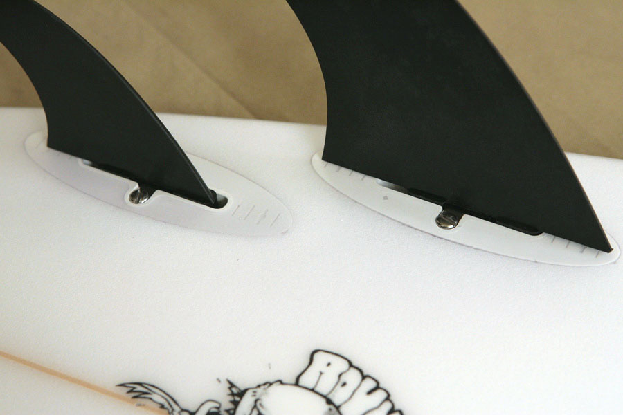 ほぼ無限にサイジングされるハンドメイドフィンが魅力のロックボックスフィンの「クアッド」を4枚きちんと装着し、アストロのネイザンバットモデルを張り、いざ!とホワイトハウスへ。