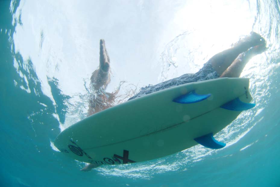 ジェイソン・カシワイのラウンドノーズ4フィンを借りてサーフし、沖で公平さんシェイプのシングルフィン『BABY QUEEN'S』のジュンジョーデザインを純と取り替えた。