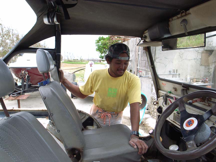 嘉良さんと愛用のジープ↓