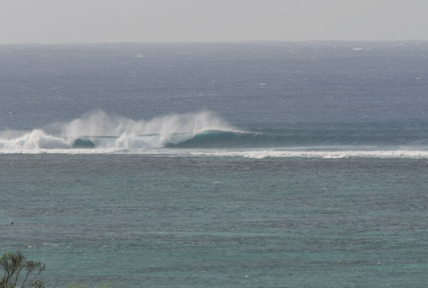 静かな内海から遙か彼方にある白波に目をやると、台風の影響で、ものすごい波がブレイクしている。