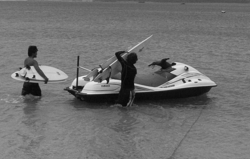 彼が快くサーフボードを貸してくれ、なおかつマリンジェットで沖に連れて行ってくれる運びとなった。