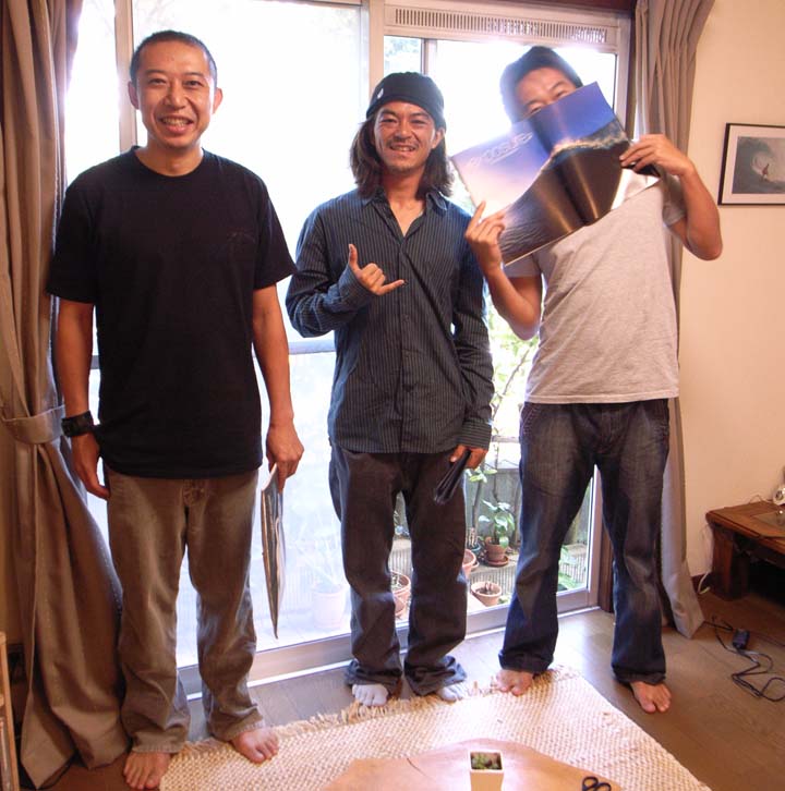 左からcyxborg誌の山本さん、上に出てきたVOGUE誌のヨギィ、そしてオンザボード誌の澪くん(なぜか顔を隠しています)↓