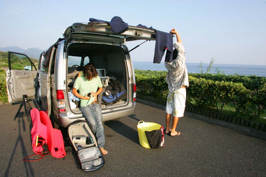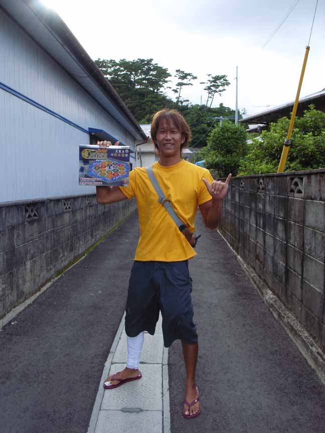 今回も屋久島同様サーフボードを持たない旅だったので、サーフボード工場「ブルーショック」を訪ると、島で一番のサーファー・シェイパーの嘉良(から)さんと知り合った。