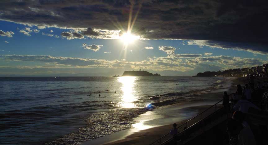 夕陽前の七里ヶ浜↓