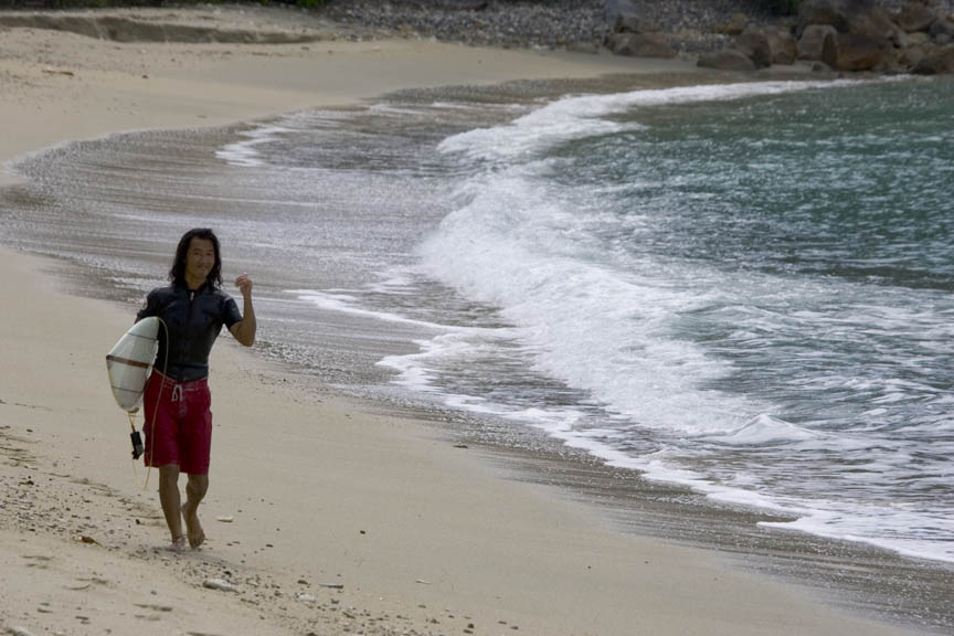 お借りしたKARAシェイプのガンの性能に目を瞠(みは)り、やはりこういう波でテストしているシェイパーってすごいなぁ、そしていつもここで孤独にサーフしている嘉良さんを改めて尊敬した。