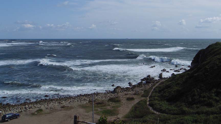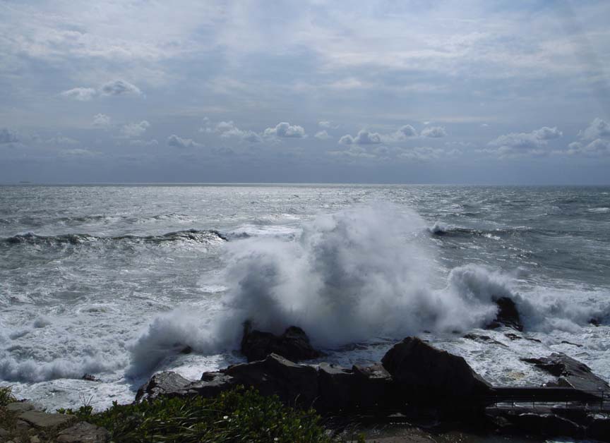 彼の三宿家で仮眠後、台風14号のうねりを求めて、千葉県は銚子市まで東関道を駆け、犬吠埼へ。