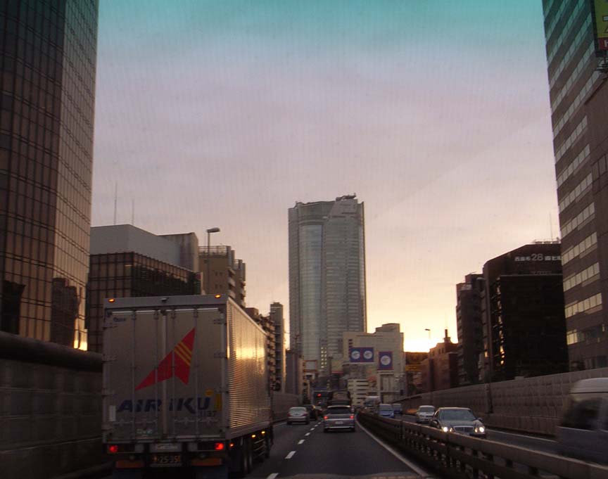 これは首都高渋谷線から見えた朝焼け六本木ヒルズ。