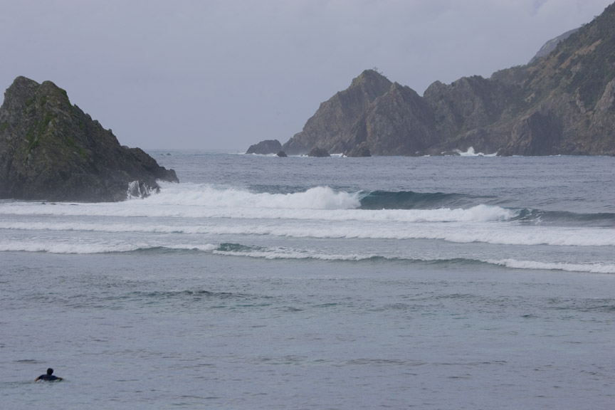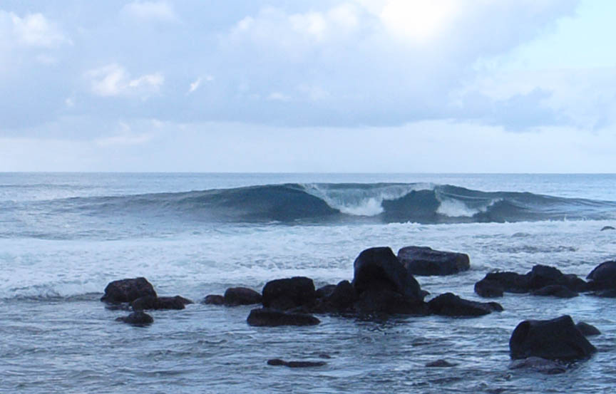 男の価値は一筋の光を見いだすことだと信じているけれど、今日はまさにそんな日。むき出しに近い岩棚の上に13号のたくましいうねりが炸裂している。それをかいくぐるのには精緻で的確な技術が求められ、その次にはこの波に乗るぞ、という堅硬な意志。まるで奇跡のようなパーフェクトなリーフの上を薄く削ぐように海が動き、うねりは一瞬で波へと変化し、その魂とリーフは絶頂をむかえ、昇華していった。