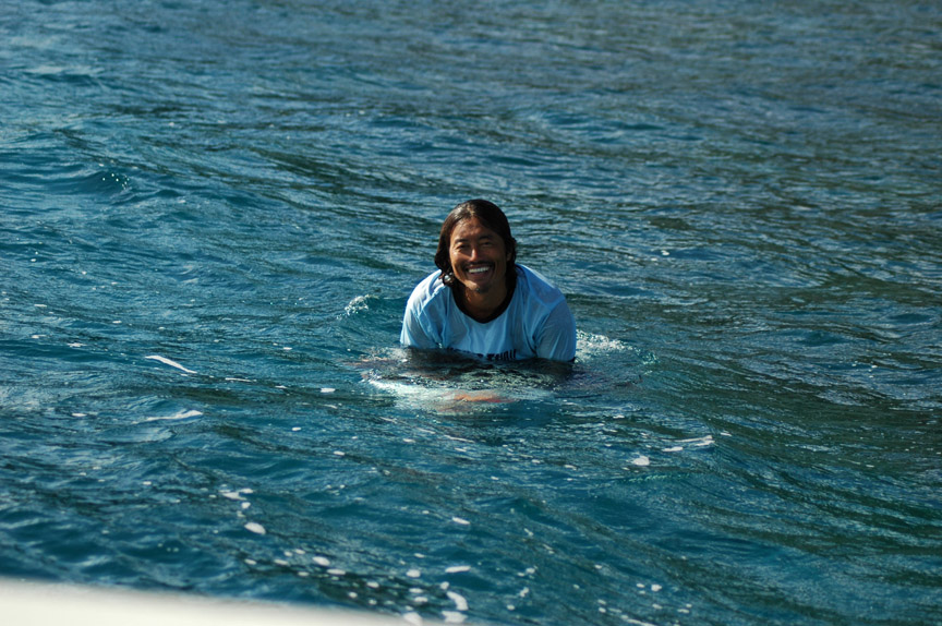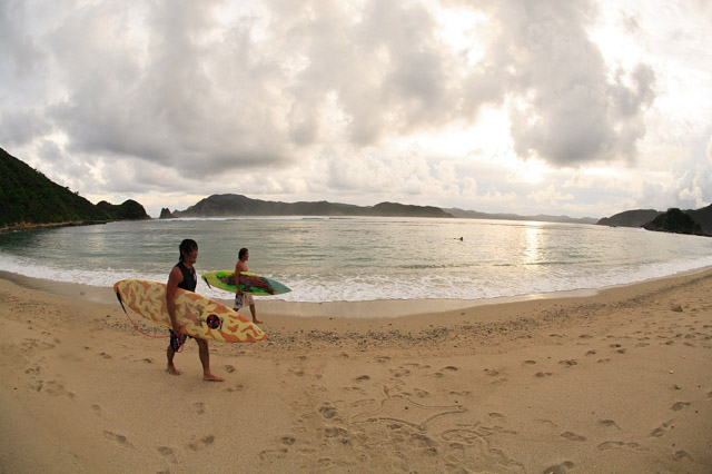 俺と竜ちゃんは、ダイナマイトレフトの潮位140cm前後という全ての波に対して、真摯に向き合った結果、わずか2時間強のセッションは生涯記憶に残るであろう時間となった。そしてこのニライカナイツアーの地元の人たちがみんな笑顔でやってきた。豊かな暖かき時間が圧縮するのを感じた。