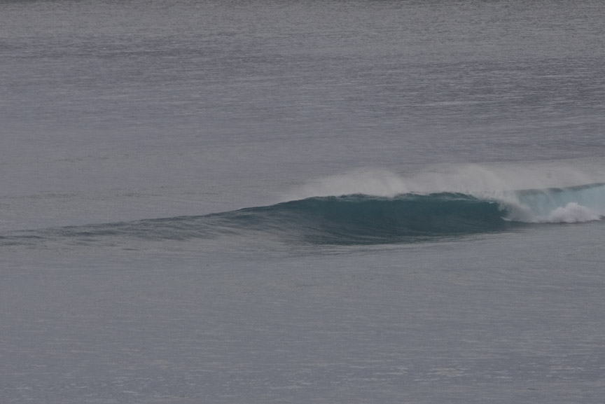 極限に浅いカミソリ・リーフに重く強いうねりが大爆発する下を幾度もかいくぐり続けた↓