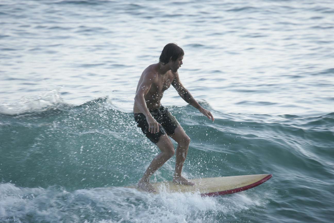 クラシックなボードでサーフ。
