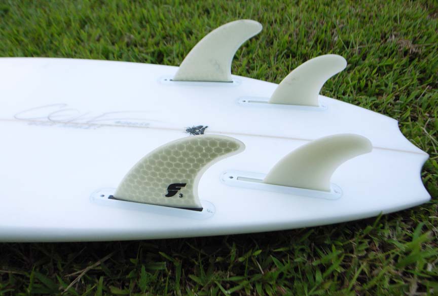 要はNAKISURFのプロスペックと同じく、ブランクスから特級品を使い、クロスもSクロス、ハニカムコアのグラスオンフィン、またはFCSでもFUTUREでも市場で一番いいものをバンドルするんだ。だから「ファイアーフライをブラックレーベルに」って言うだけで考えられる最高品質のサーフボードになる。