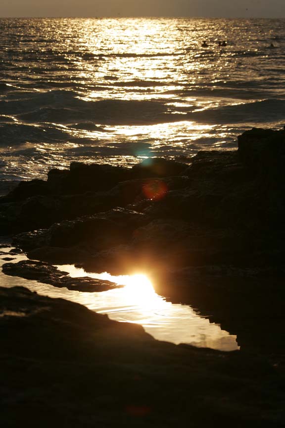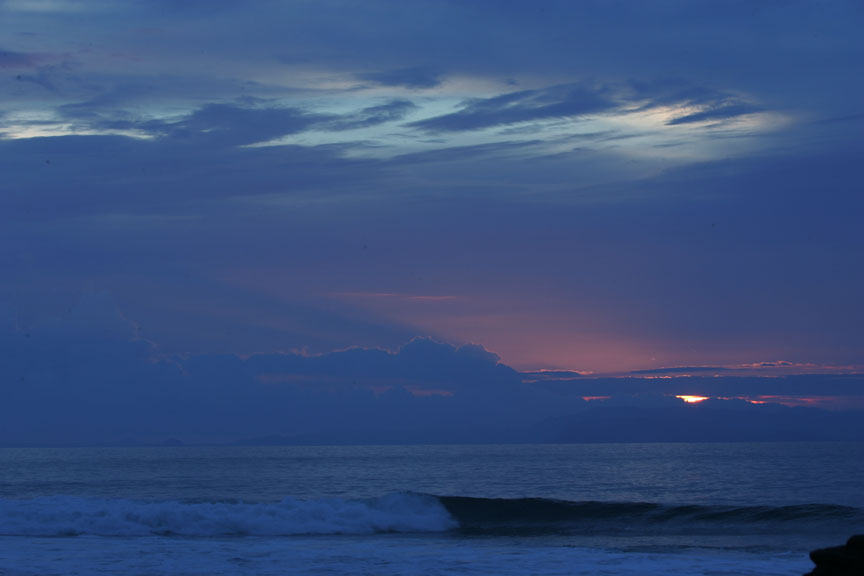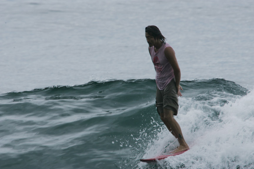 浜で満足して感動していたら、ロングボーダー(コーヒー屋の店員)がその次の波に乗って上がってきて、「信じられない、あんな波が来るなんて、wave of the day for sure」だと賞賛してくれ、うれしくなって、板を浜に置いてずっと泳いでいた。