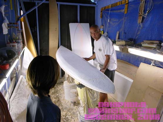用件は現在シェイプ中のお客さまボードをチェックと、ノアのSUP用のパドルをオーダーすること。