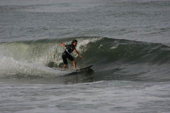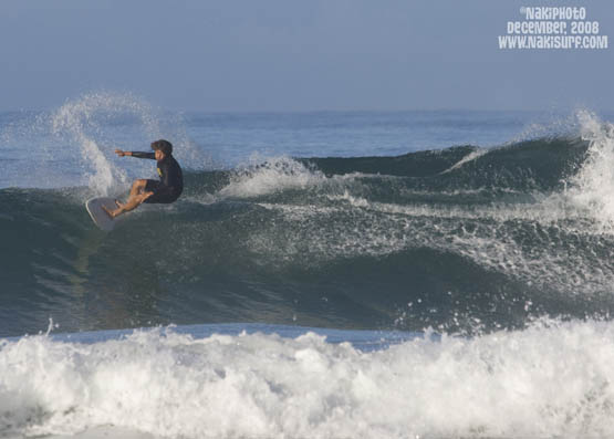 まずは一枚目のこのショットはボトムターンのクリッピングポイント(頂点)を通過しているのですが、理解していただきたいのはここが最高速となるように波を滑り降りるということです。