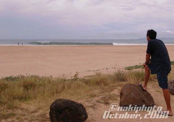 砂利道をずっと走り、4駆でしか行けない道を抜け「釣り師たち」というブレイクを見ると、ダラダラ九十九里浜系の波だった。