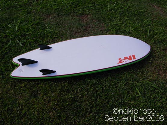フィンもソフトで、センターに大きいのが一応ついているけど、ビヨーンって曲がっちゃうのであまり役には立っていないようです。(笑)