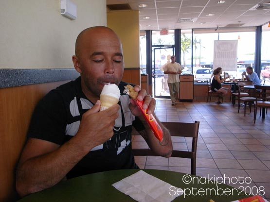 途中で大きなドノバンの看板を見つけ、興奮したのでちょっと早かった(ハワイだと朝4時)けど、本人にかけると威勢良く出た。